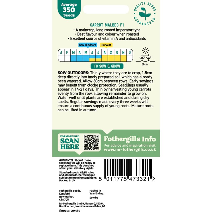 Carrots Seeds (Malbec Hybrid) - Sowing Instructions
